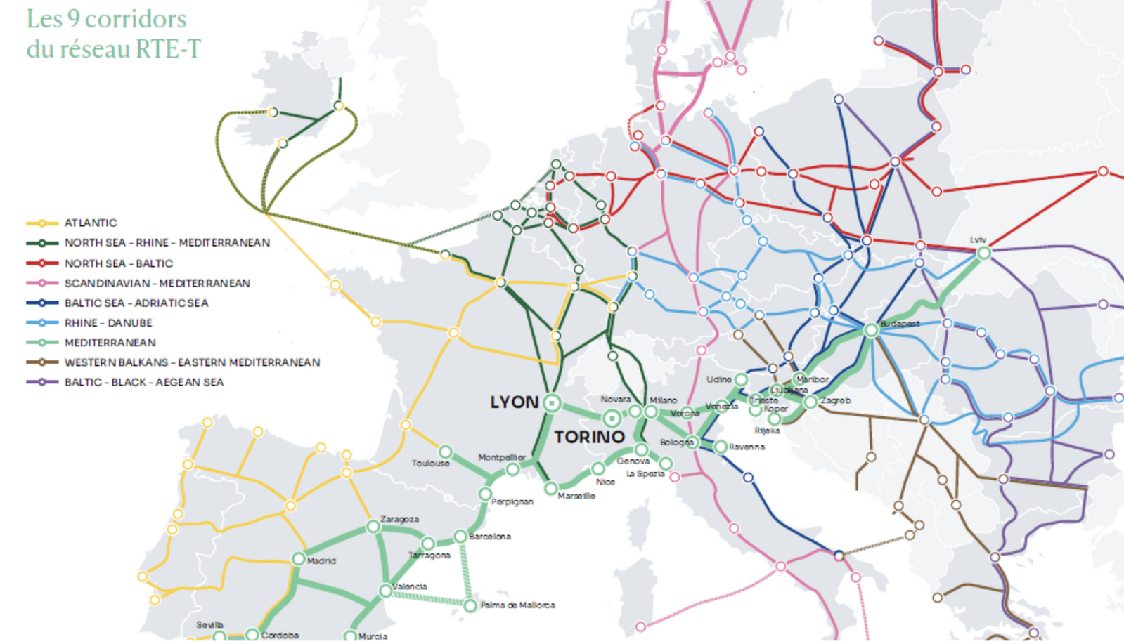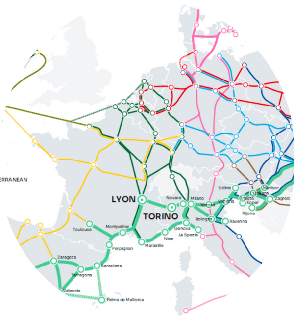 Le réseau RTE-T est l’ensemble des infrastructures de transport transeuropéennes conçue par l’Union européenne pour faciliter la circulation des personnes et des biens. Il comprend 9 corridors - dont le corridor méditerranéen duquel fera partie l’axe Lyon-Turin. Le RTE-T reliera les différentes régions d’Europe dans un réseau de transport unique, intégré et multimodal.